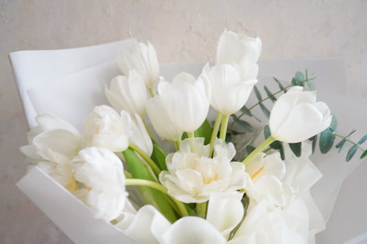 ELEGANT | WHITE TULIPS BOUQUET WITH EUCALPYTUS