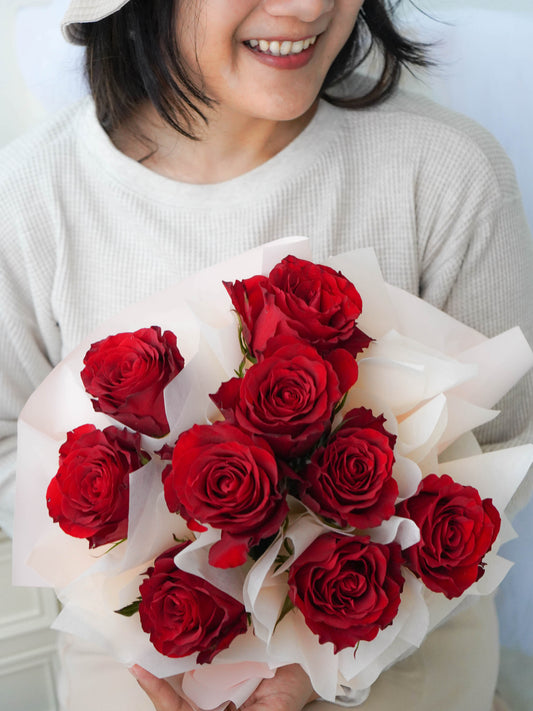 • HEARTBEAT | 9 STALKS RED ROSES (Comes in Fresh OR Preserved)